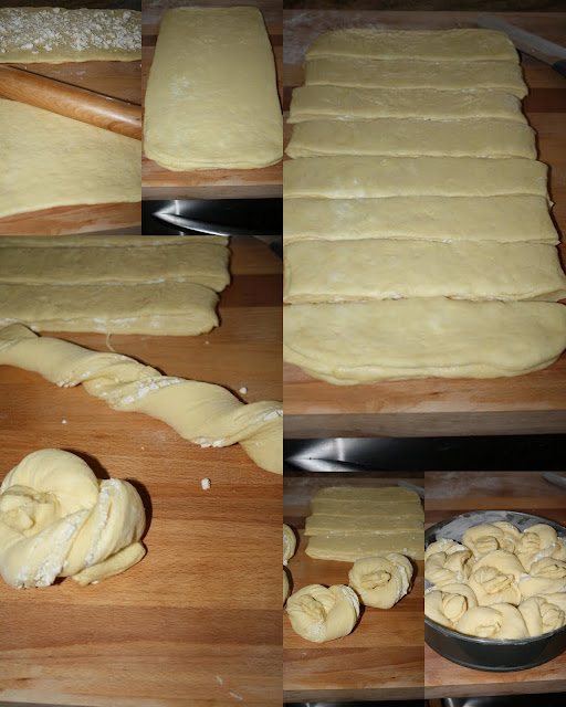 4. Od nadoslog tijesta oblikovati valjak, pa ga izrezati na cetiri dijela.