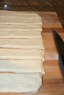5. Jedan po jedan rastanjiti u obliku pravogaonika, pa premazati margarinom.